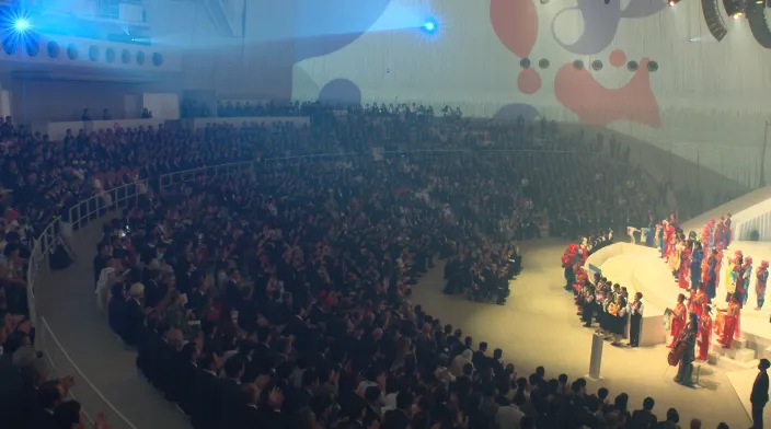 A projection mapping system was used at the Closing Ceremony, held at the EXPO Hall “Shining Hat”