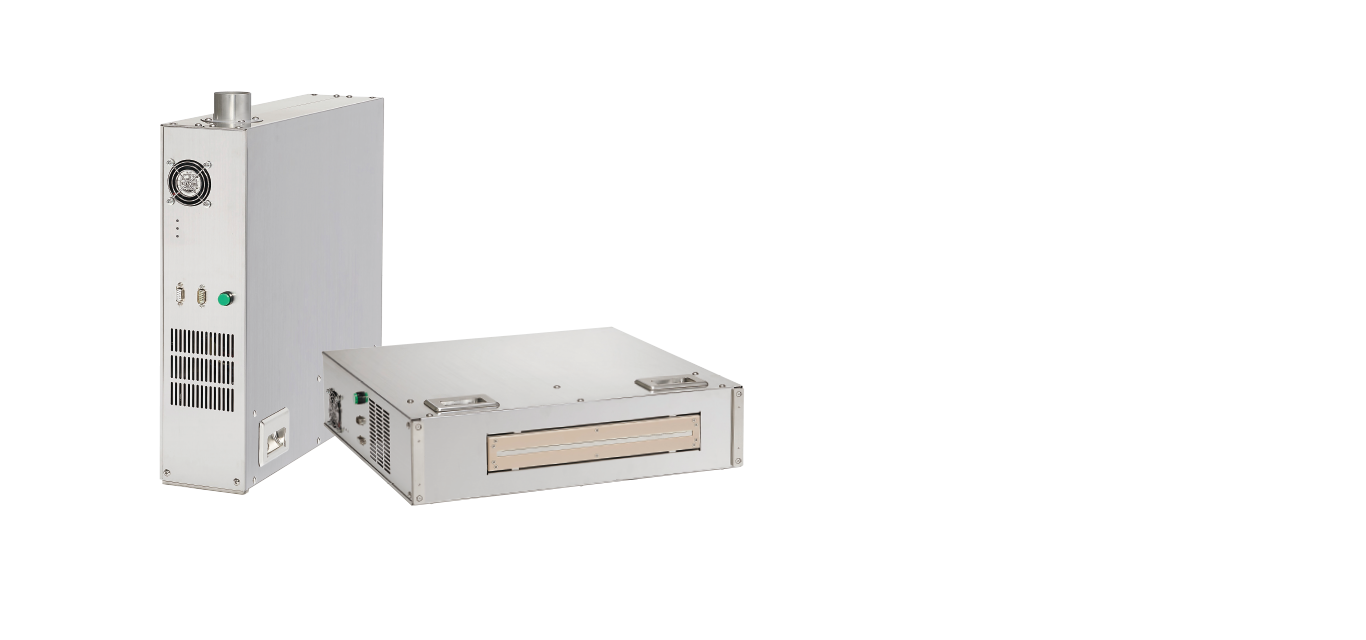 We have developed an Atmospheric Pressure Plasma Irradiation Device that combines our own reactor structure with the high-frequency power supply technology cultivated for excimer lamps.