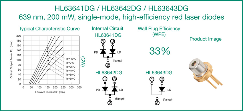 Product and Technology HL63642DG: Ushio releases improved 639 nm, 200 mW, single-mode laser diodes