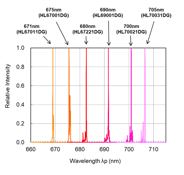 By applying the device design and crystal growth technologies cultivated in the development of 640nm red high-power single-mode LDs, we have developed a lineup of 200mW high-power single-mode LDs in the 670-705nm red wavelength range that lasing at a specific wavelength suitable for quantum technologies (optical lattice clocks, laser cooling, etc.). These products will contribute to the development of quantum technology.