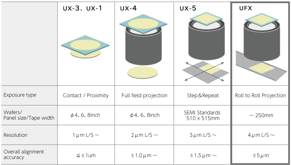 Currently Ushio's proximity/projection exposure systems for flexible substrates have a track record of over 800 units.