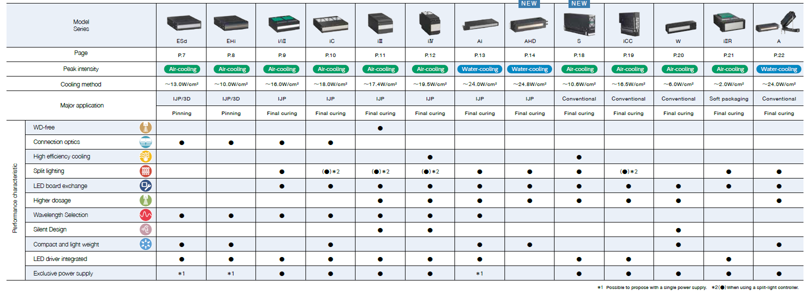 1. High irradiance : Up to 24W/cm2