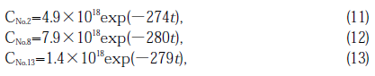 where X, Y and Z represent the relative concentration of each of product and X≈3Z≈100Y It is deduced that X and Z were stored in the specimen during illumination, but iY saturated at a certain value. During illumination, we speculate that Y was one or two order of magnitude higher than that detected after illumination at room temperature[30] and most of the Y products vanished during cooling. The disappearance of the Y product seems to be a reason why the concentrations of E' and NBOH centers were almost constant with increase in the fluence.