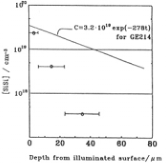 Assuming that the amount of SiSi home bond generation is proportional to the intensity of incident light, the wavelength of the light contributing to SiSi generation could be estimated from the depth profile. The distribution of SiSi bonds in the specimen is shown in Fig.8 and the slopes of the concentration distribution have been evaluated as in Eqs.(11)-(14).