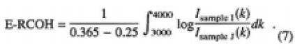 where t is the thickness in centimeters, and Ibase is the detected light intensity through the sample after heating in a vacuum. RCOH does not include the reflection loss and sum of the absorption coefficient in the integral regions. Also, RCOH is the average value in the sample, which does not take into account the distribution of OH group concentration.