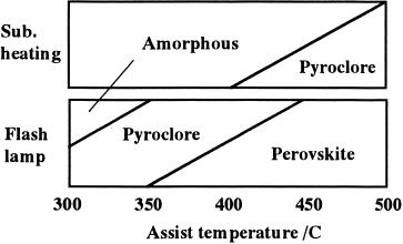 Fig.3 Phase transition of PZT films with flash lamp treatment and no flash lamp heating.