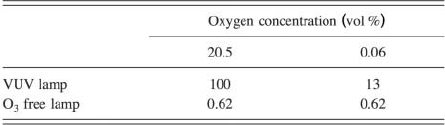 TABLE I. The dependence of sound pressure of the VUV lamp and the O3 free lamp on the oxygen concentration. The water vapor pressure is kept at 500 Pa.