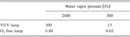 TABLE II. The dependence of sound pressure of the VUV lamp and the O3 free lamp on the water vapor pressure. The oxygen concentration is kept at 0.06 vol %.