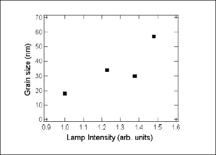 Figure 6: Grain size of ngp-Si films as a funciton of relative lamp intensity.