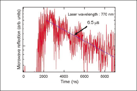 Figure 7 shows the result of µ-PCD measurement for a ngp-Si film with a thickness of 1500 nm after HPWVA under 3.0 MPa at 350°C. High minority carrier lifetime of 5-10µs can be observed. Assuming the minority carrier mobility of 10 cm2/Vs, which is equivalent to the measured majority carrier mobility of ngp-Si, this lifetime corresponds to the minority carrier diffusion length of over 10µm. No significant signal can be observed without HPWVA. Therefore, HPWVA is also effective for ngp-Si films fabricated by millisecond RTA and essential process for high-quality ngp-Si films applicable for thin film solar cells.