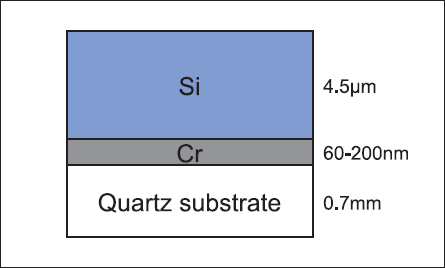Figure 1 shows a schematic diagram of the sample structure. Instead of low-cost glass substrates, 20 × 20 × 0.7 mm quartz substrates were used for fundamental research. Cr films of 60 or 200 nm in thickness were first formed on the quartz substrates by sputtering, followed by preparation of a-Si films of 4.5 µm in thickness by catalytic chemical vapor deposition (Cat-CVD). The a-Si films show a hydrogen content of as low as approximately 3%, which is suitable for such rapid crystallization processes having an issue of hydrogen bubbling during annealing and resulting peeling of the Si films.