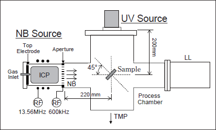 The substrate was 220 mm from the apertures, and the angle of the substrate surface was fixed at 45° to the direction of the neutral beam irradiation and photon irradiation. The Si etching depth was measured using atomic force microscopy.