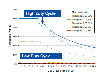 Figure 1: The impact of the source duty cycle upon scanner throughput