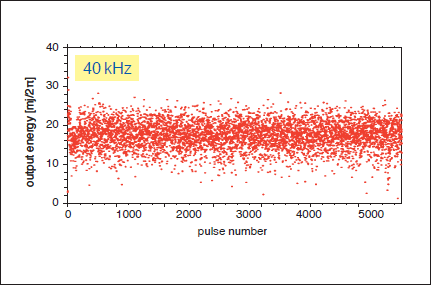 Figure 10: Demonstration of a repetition rate of 40 kHz. The pulse to pulse output energy remains sufficiently constant for the used un-stabilized mode.
