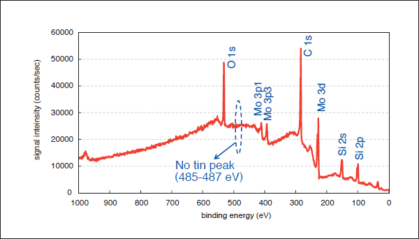 Typical XPS spectrum after EUV exposure is shown in Fig. 10. If there was a tin, then it should have a peak around 485- 487 eV. In the all measurement, we couldnʼt see any tin peaks. And the depth profile of the exposed sample was also measured with XPS. Then there was no tin peak. Hence, tin from pinch is completely blocked in DPP-SoCoMo and there is no tin behind IF.