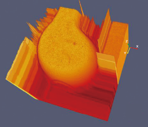 As shown in Fig. 3, Intensity images and phase images can be regenerated from raw holographic images at each height with desired gap. The three-dimensional interfacial geometry is reconstructed by unwrapping longer wavelength information of phase image (Fig. 4). Then, we can detect the three-dimensional position of tracer particles inside the tip of to-be-dispersed phase using fringe pattern matching method. In order to improve detection accuracy, the intensity information is also utilized. Finally, three-dimensional velocity of particles can be calculated (Fig. 5).