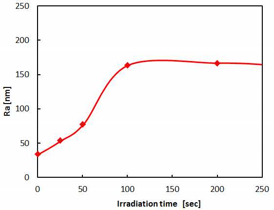 Fig. 7 Behavior of roughness Ra by the urradiation time