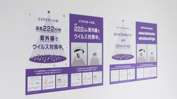 衛生環境向上を目的に、開会式会場のEXPO ホール「シャインハット」入り口をはじめ、 計84箇所に、抗ウイルス・除菌用紫外線技術「Care222®」を導入しています。