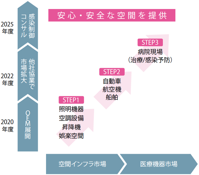 ただし、今回のコロナ禍における大きな変化はネガティブなことだけではなく、多くの新たなビジネスを生み出すチャンスでもあると考えており、Care222™を活用した映像分野でのソリューションをはじめとした、他のウシオグループ製品とのシナジーを高められる大きなチャンスと捉えています。