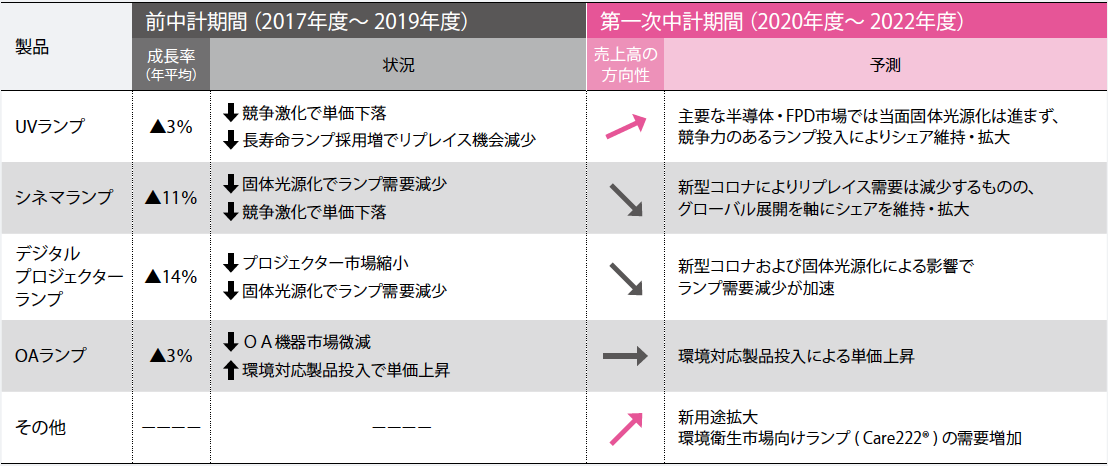 また上記3つの有望製品に共通して、保守サービスやリプレイスランプ事業などのストックビジネスの強化をしてまいります。加え、事業全体として引き続き生産性向上に注力するなど、更なる経営効率改善と品質改善にも取り組むことで、より一層の安定した収益構造を目指してまいります。