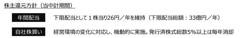 新中計初年度(2020年度)は、新型コロナウイルス感染症拡大の影響を受け、大変厳しい事業環境を想定していますが、新中計期間において、新型コロナからの自立回復に加え、構造改革と有望製品の貢献による成長拡大を見込んでいることから、年間配当は下限配当として1株当たり配当を26円/年を設定しました。自社株買いについても、経営環境の変化等に対応し、機動的に実施していく考えを継続していきます。