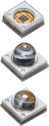 チップサイズのハイパワーコンパクトパッケージ。高密度実装に最適。 | セラミックパッケージ。レンズ選択肢は2種。 |
