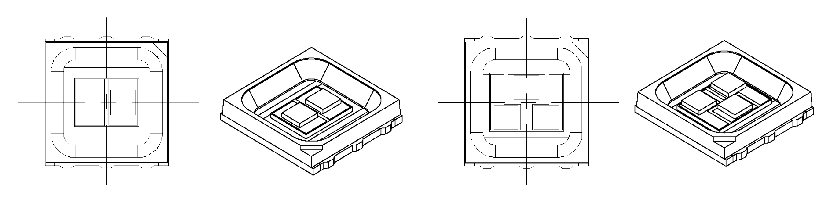 同一波長でも、複数波長でも搭載可能な5㎜×5㎜各の多用途なパッケージです。またレンズも挟角な02レンズ他各種取り揃えております。