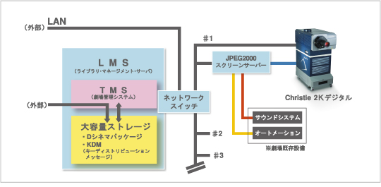 「新宿ピカデリー」は、国内で初めて、全スクリーンにクリスティのDCPとデジタルコンテンツ上映に必要なデジタルシネマサーバを設置し、それぞれをネットワーク接続した国内初の「フルデジタル・ネットワーク・シアター」として誕生いたします。松竹は、年内に国内初となるシアターマネジメントシステム(TMS)を導入し、DCP、デジタルシネマサーバと接続することで、映画・コンテンツのプレイリスト・ステータス情報などを集中管理できる、次世代のシアターオペレーションを完成いたします。