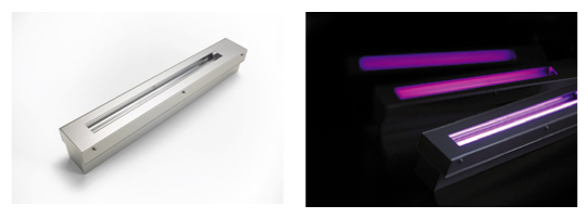 「UV-XEFL®」の外観(左)と、点灯中の様子(右)
