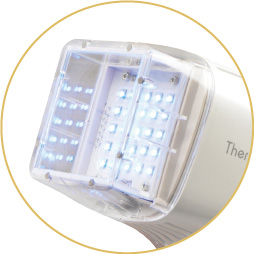 そのUVB₋LED光源システムを搭載したセラビーム® UV308 mini LEDは、省エネ化とハンドピースの小型・軽量化を実現しました。また、高出力かつ安定した光照射が可能となったことで、照射時間も従来の1/4※5に短縮することに成功しました。