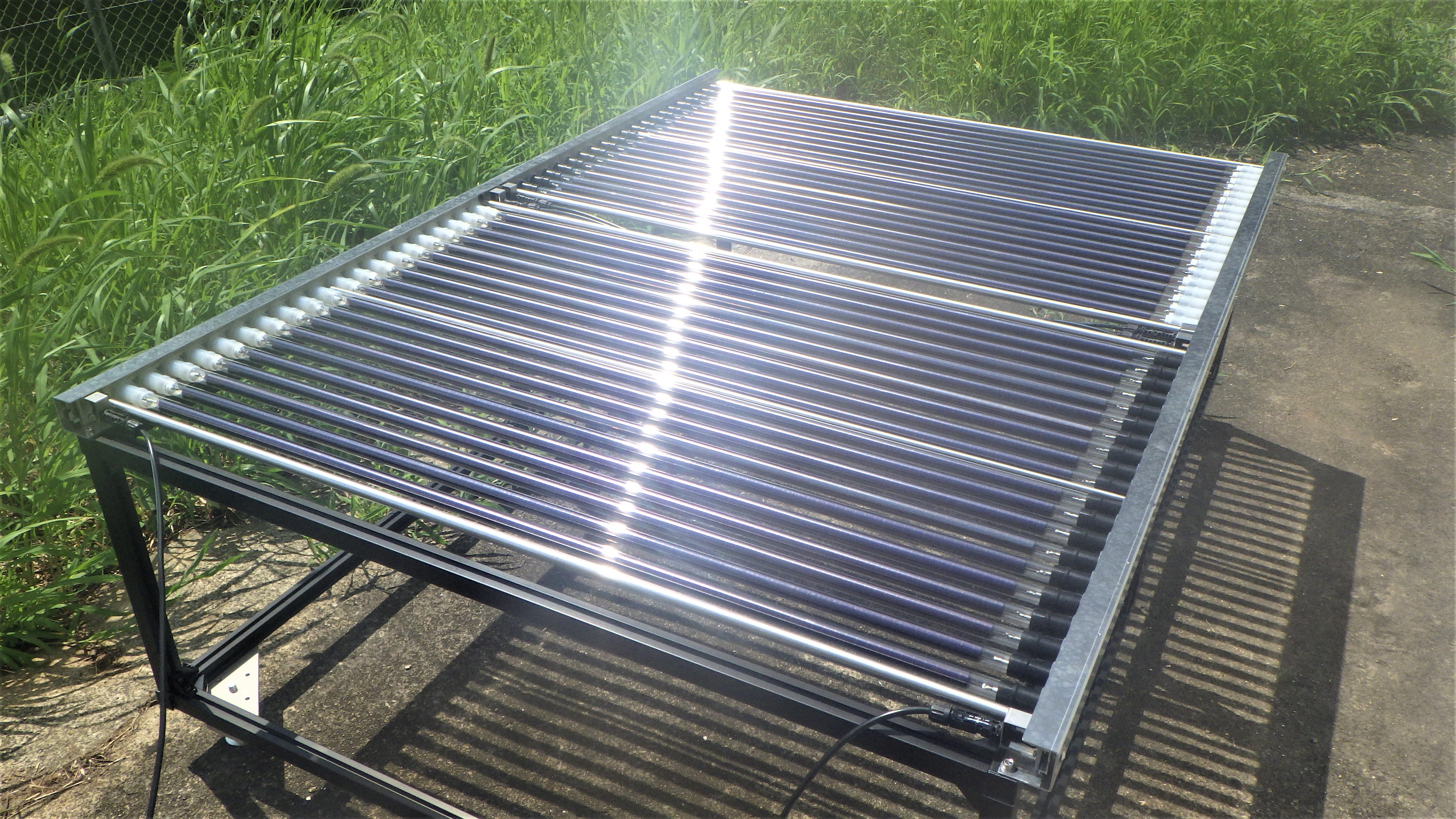 発電シートを円筒型のガラスの中に入れ込み、封止した太陽電池。軽量で運搬やメンテナンスが容易なことから設置する場所や形態を問わず、全方向の光で発電できるため一日の総発電量が平板型の約1.5倍という特長を持っています。円筒型のガラス管が一定の隙間を空けて並べられ、風や光を通すことから、耕作地などに設置して太陽光を分け合う「ソーラーシェアリング」が可能。