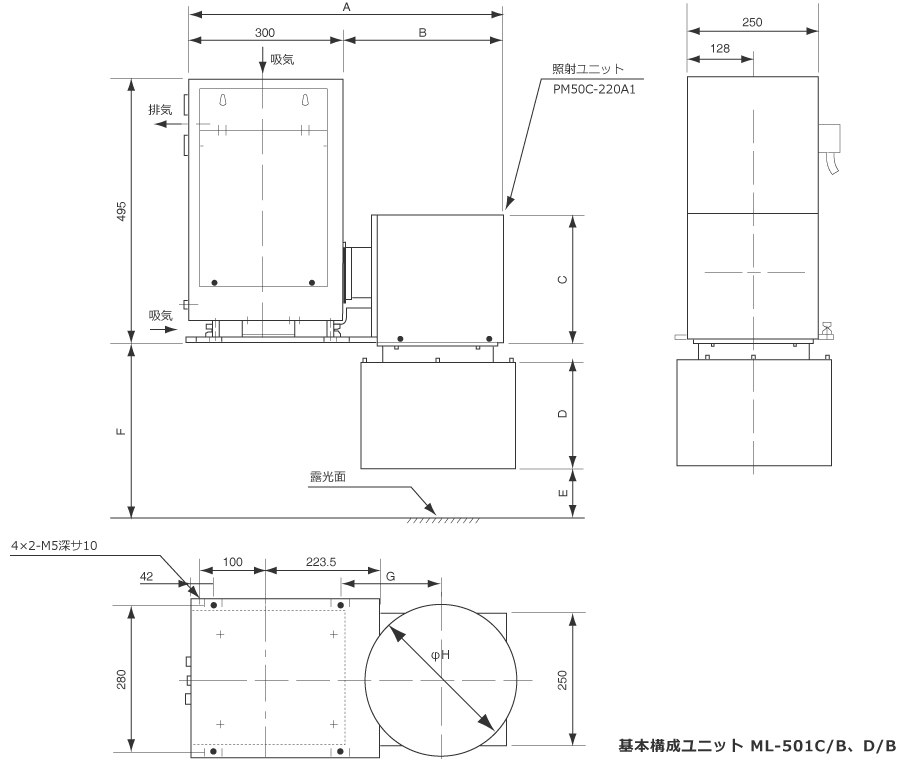 【外観図.2】 照射径φ135、φ160、φ200の場合
