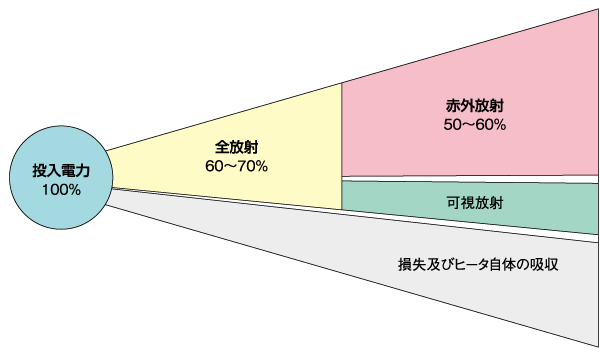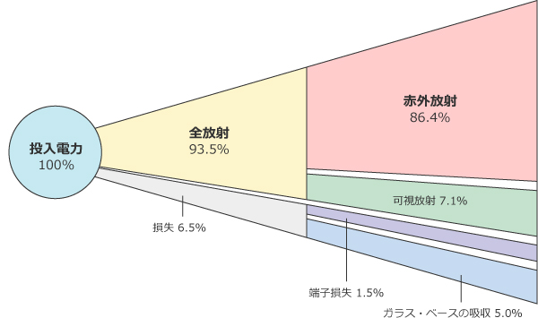 投入電力の85%以上を赤外線に変換・放射。ランニングコストの低減を実現