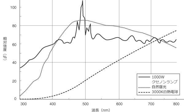 可視域~赤外域までに昼光に類似した連続スペクトルを有し、演色性に優れています。