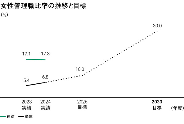 ウシオグループでは、2026年までに女性管理職比率を15%以上、単体では10%以上とすることを目標に掲げ、2030年度には単体で30%以上の達成を目指しています。