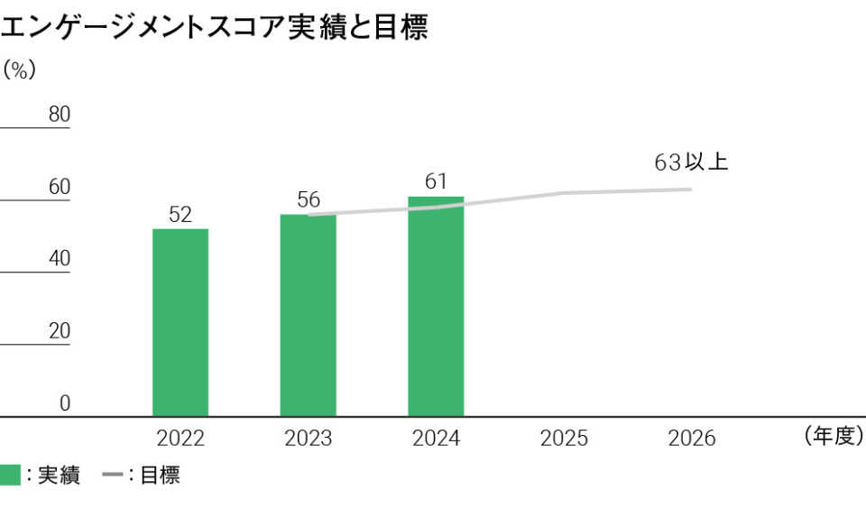 2030年の目指す姿に掲げている「会社と社員がともに成長、貢献しあう『エンゲージメント』が高い状態の実現」に向けて、様々な取り組みを実施しています。