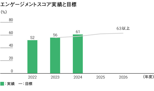 2030年の目指す姿に掲げている「会社と社員がともに成長、貢献しあう『エンゲージメント』が高い状態の実現」に向けて、様々な取り組みを実施しています。