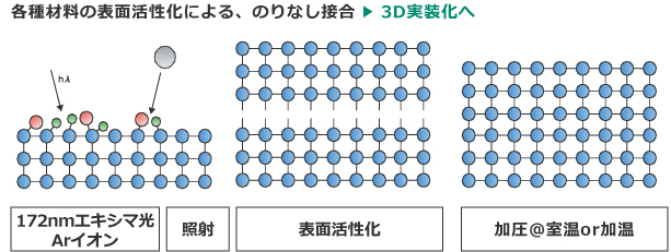 表面活性化による常温接合 硬化・接着 改質 エネルギー MEMS・電子部品 バイオ・化学 半導体 印刷 機能材料 液晶・ディスプレイ プリント基板・PKG 表面の活性化と有機物の除去により「のりなし接合」と「接合強度のアップ」を実現。 関連製品 エキシマランプ/エキシマ光照射ユニット