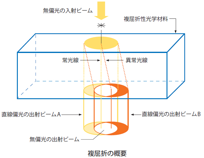 複屈折 birefringence ふくくっせつ 解説 複屈折とは、非等方性をもつ媒質に光が入射するとき、2つの屈折光が現れる現象のこと。 ここでいう非等方性とは、物質や空間の物理的性質が方向によって異なることで、異方性ともいう。気体、普通の液体、非晶質(アモルファス)の固体(ガラスなど)は等方性を示す。 関連用語 光 関連製品 関連URL 付属資料 用語50音一覧 あ行 か行 さ行 た行 な行 は行 ま行 や行 ら行 わ行