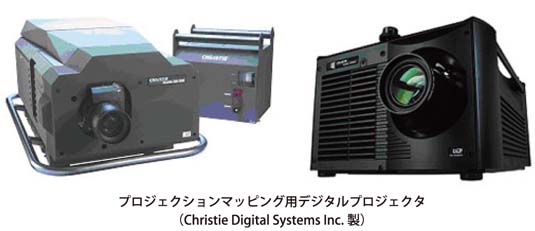 デジタルプロジェクタには、異形状、異材質、凹凸などが混在する建築物の壁面をあたかも平面状のスクリーンのように映し出す3D対応型の特殊映像機能(自動矯正、自動色調調整等)が搭載されている。光源には高輝度キセノンランプが内蔵され、数万ルーメン級の鮮明映像を実現している。
