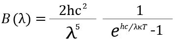 ※黒体からの熱などの放射を黒体放射と言うが、ある温度の黒体から放射される電磁波のスペクトルは一定である。温度 T において、波長 λ の電磁波の黒体放射強度 B (λ) は、