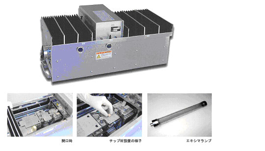 μTAS接着装置とは、μTAS(Micro Total Analysis Systems)チップの装着工程1)で使用される接着装置のこと。172nmを主波長に持つエキシマランプが搭載されている。