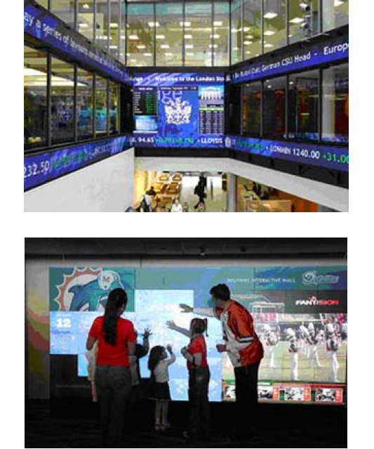 双方向型のデジタルサイネージ(米国プロフットボールチーム「マイアミドルフィンズ」のサンライフスタジアム)
