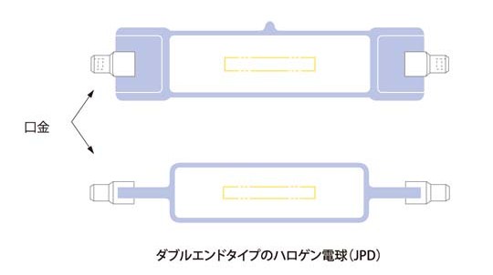 ダブルエンドタイプ(ハロゲン電球の) double-capped(tungsten halogen lamp) だぶるえんどたいぷ(はろげんでんきゅうの) 解説 ダブルエンドタイプ(ハロゲン電球の)とは、ランプの口金がランプの両端2箇所にあるハロゲン電球の形状のこと。両口金型とも言う。 品種としては、J、JP、JPD、QR、QIR等がある。 関連用語 口金 ハロゲン電球 ランプ 関連製品 関連URL 付属資料 用語50音一覧 あ行 か行 さ行 た行 な行 は行 ま行 や行 ら行 わ行