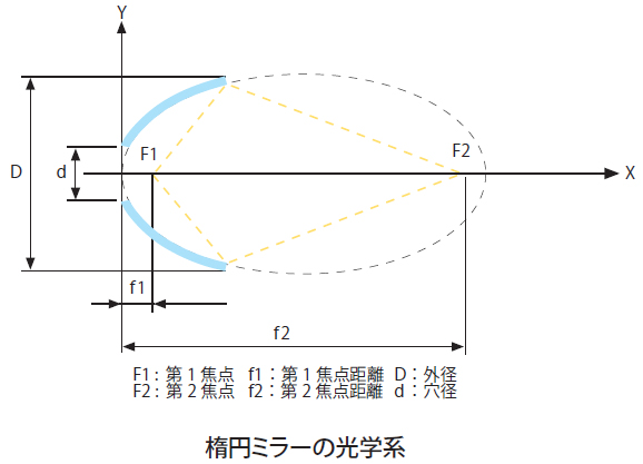 楕円ミラー ellipsoid mirror だえんみらー 解説 楕円ミラーとは、楕円の特徴である2つの焦点を利用し、一方の焦点から出た光を反射して、もう一方の焦点に集める面を持つ鏡面のこと。楕円面鏡と呼ぶこともある。ソーラーシミュレータ、半導体・液晶・PDP・プリント基板などの露光装置などに使用される。 関連用語 焦点 ソーラーシミュレータ(ソーラーシミュレータ―) 楕円面鏡 反射 光 露光装置 関連製品 関連URL 付属資料 用語50音一覧 あ行 か行 さ行 た行 な行 は行 ま行 や行 ら行 わ行