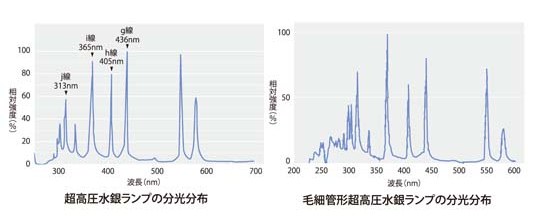 超高圧水銀ランプ(超高圧UVランプ)とは、106~数107Paの水銀蒸気中のアーク放電の発光を利用する放電ランプのこと。