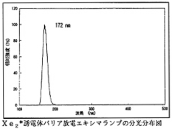 これらは、従来のランプと全く異なる発光メカニズムを持ち、中心波長がそれぞれ172nm(ナノメータ)、222nm、308nmという短波長の紫外線領域で、しかも線スペクトルに近い単一波長の光を、選択的に高効率で発生します。