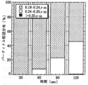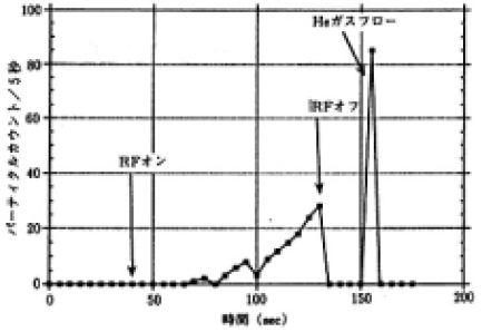 第4図に示すように粒径的にはRFオン後から徐々に大きくなり成長していることが分かる。この例では0.35μm以下の比較的小さい粒子がほとんどであった。これらのデータはパーティクルがプラズマシートにトラップされて成長していくというSelwyn等の発塵のメカニズムと矛盾しない結果である。