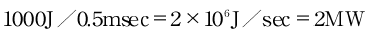 となる。ランプの大きさを、太めの鉛筆2本ほどのものとするなら、このところで瞬間的に2MWの電力が消費されている。これはちょっとしたガスタービンの出力に相当し、いかに高エネルギー密度であるかが判る。