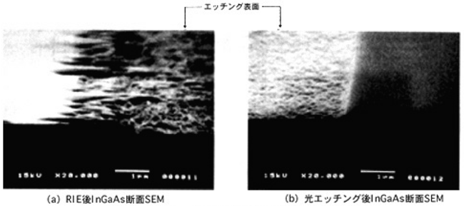 図4 RIEおよび光エッチング後のInGaAs表面の断面SEM写真